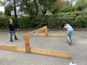 Alle Klassen organisierten mit ihren Schülern, Eltern und Lehrern 23 verschiedene Stationen auf unseren drei Schulhöfen. Es wurde geworfen, geschossen, balanciert, gebastelt, gespielt und geknobelt.
