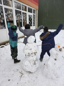 Wunderbar sehen die Schneemänner mit dem Namen BURGER, POMMES und MR IKRIMAX aus.